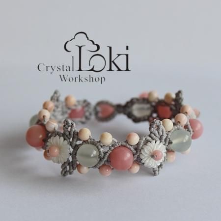 羅樹オリジナル手編みブレスレット/ピンクオパール