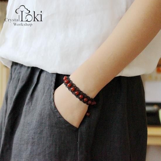 羅樹オリジナル手編みブレスレット/レッドメノウ